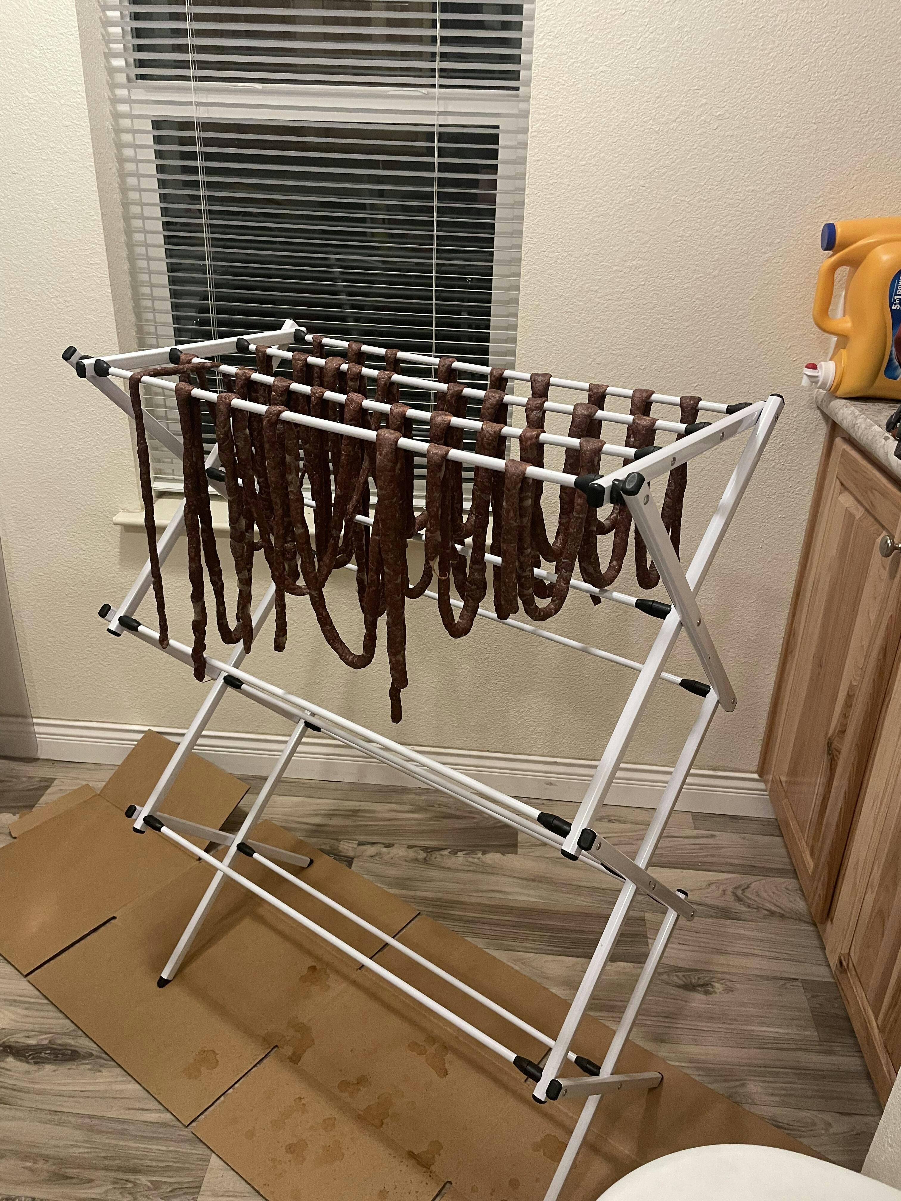 - Hang sausages overnight in a cooler.