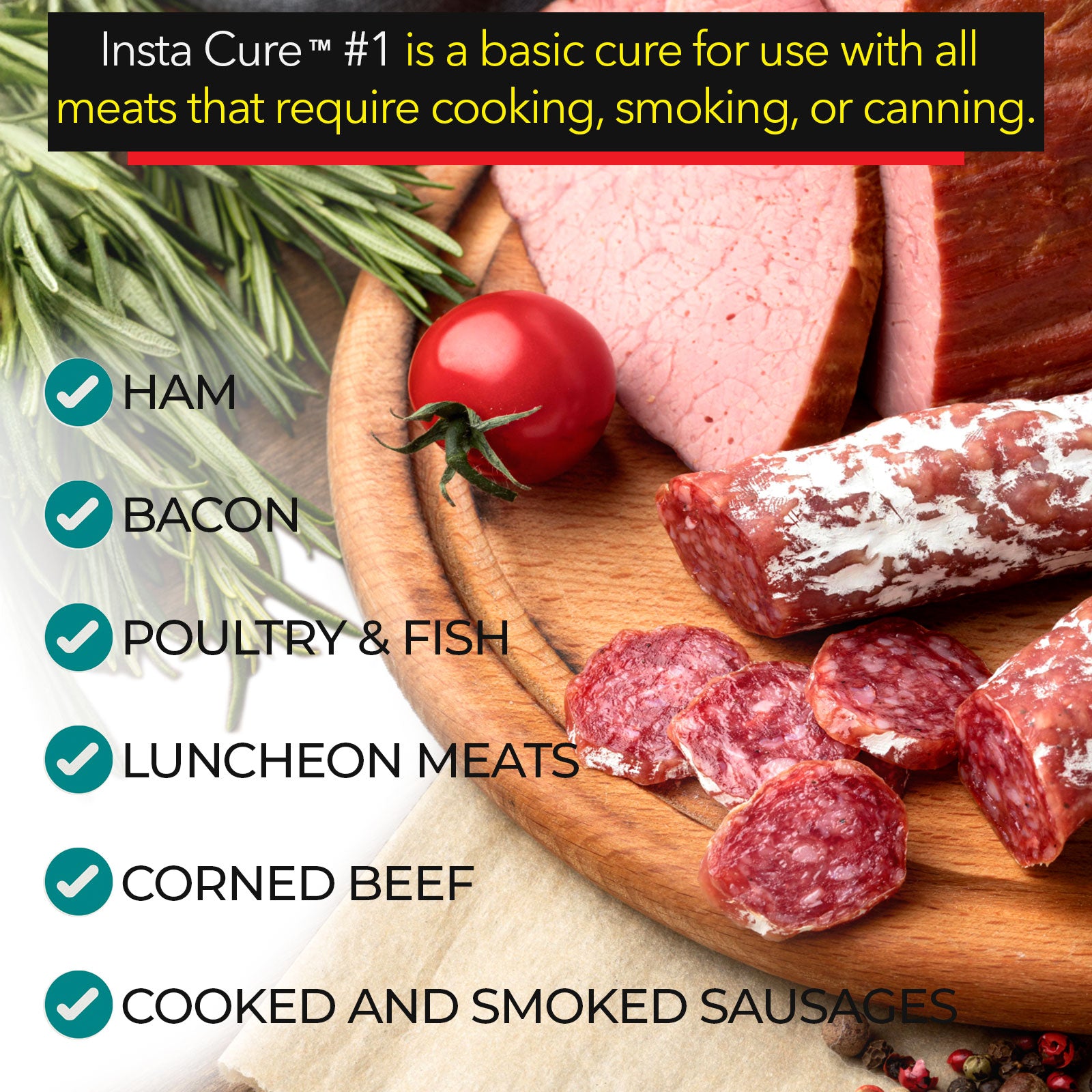 Insta Cure #1, also known as Prague Powder #1, is commonly used to cure ham, bacon, corned beef, sausage, poultry, and fish, helping to reduce the growth of harmful bacteria, such as botulism. This pink curing salt #1 not only improves food safety but also enhances color, flavor, and shelf life. Whether you're making smoked meats or canning cured products, Insta Cure #1 delivers consistent, reliable results for preserving and enhancing the flavor of meat.