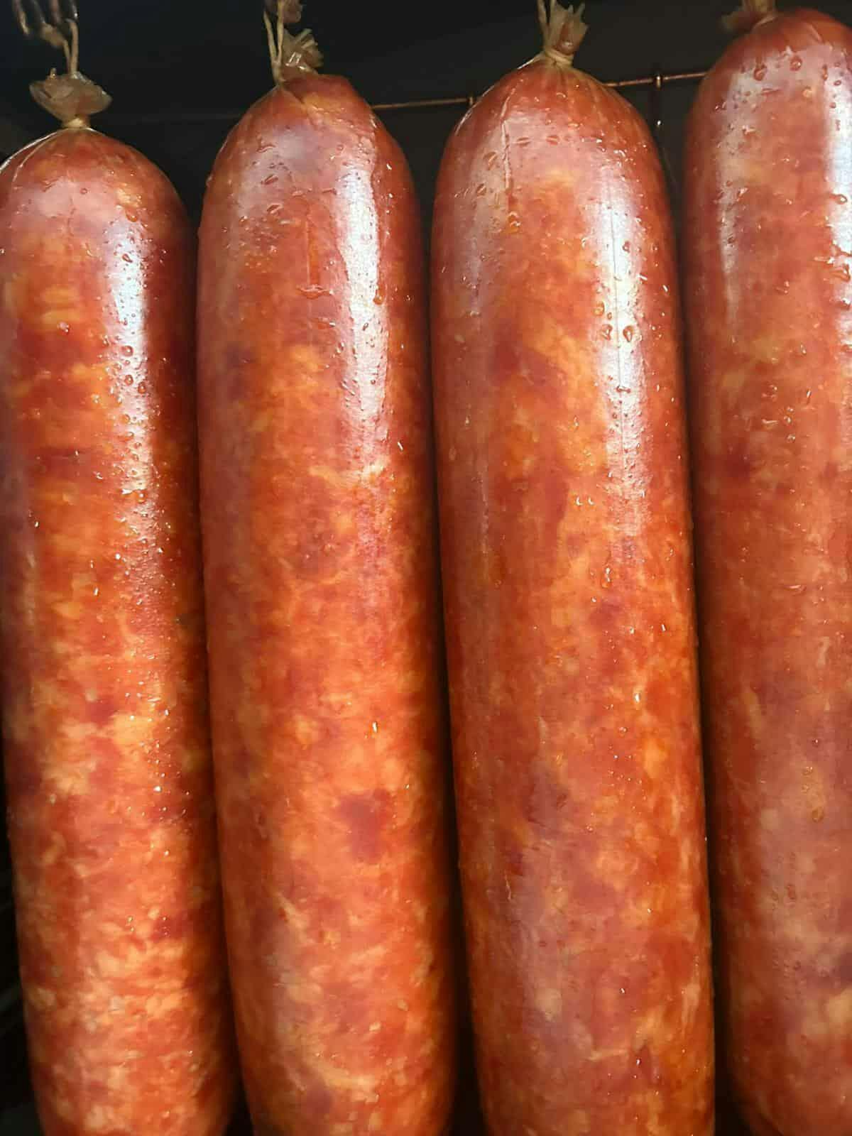 - Use sausage stuffer to stuff meat into casing until full and 2 inches remain unfilled at the end of the casing